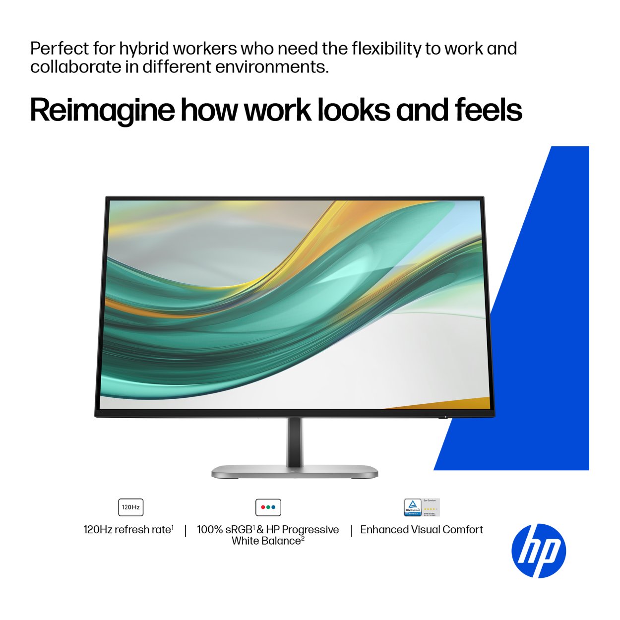 Accelerate your work on this 27" FHD monitor. Experience every detail and lightning-fast, smoother scrolling with 120Hz refresh rate. See your work with more bright, vibrant, consistent colours with 100% sRGB and HP Progressive White Balance