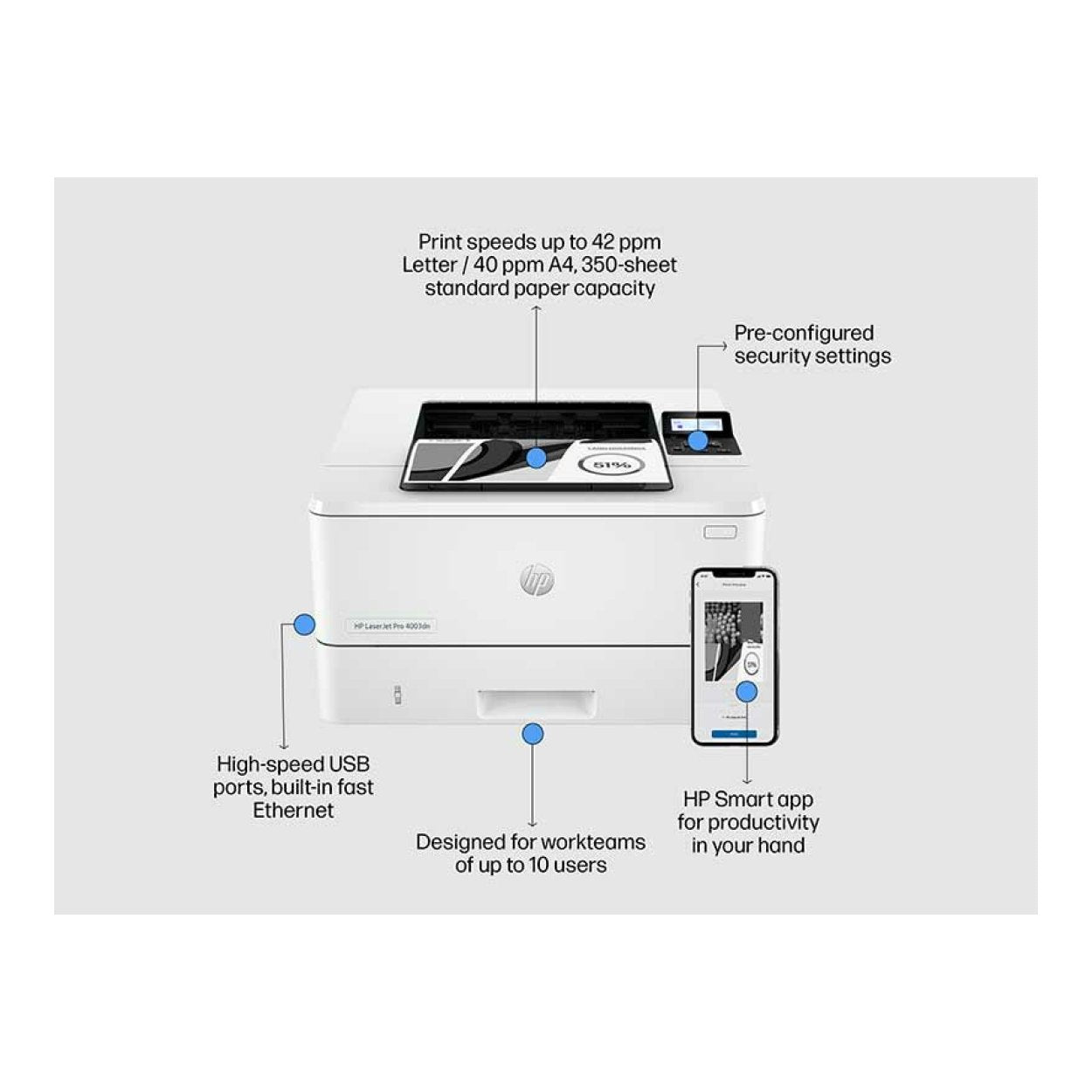 HP LaserJet Pro 4003dn A4 Mono Laser Printer 2Z609A