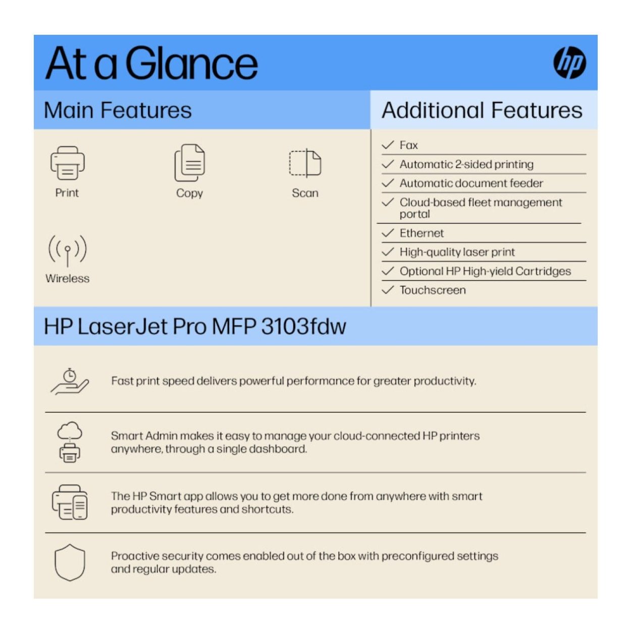 Fast print and duplex speeds.