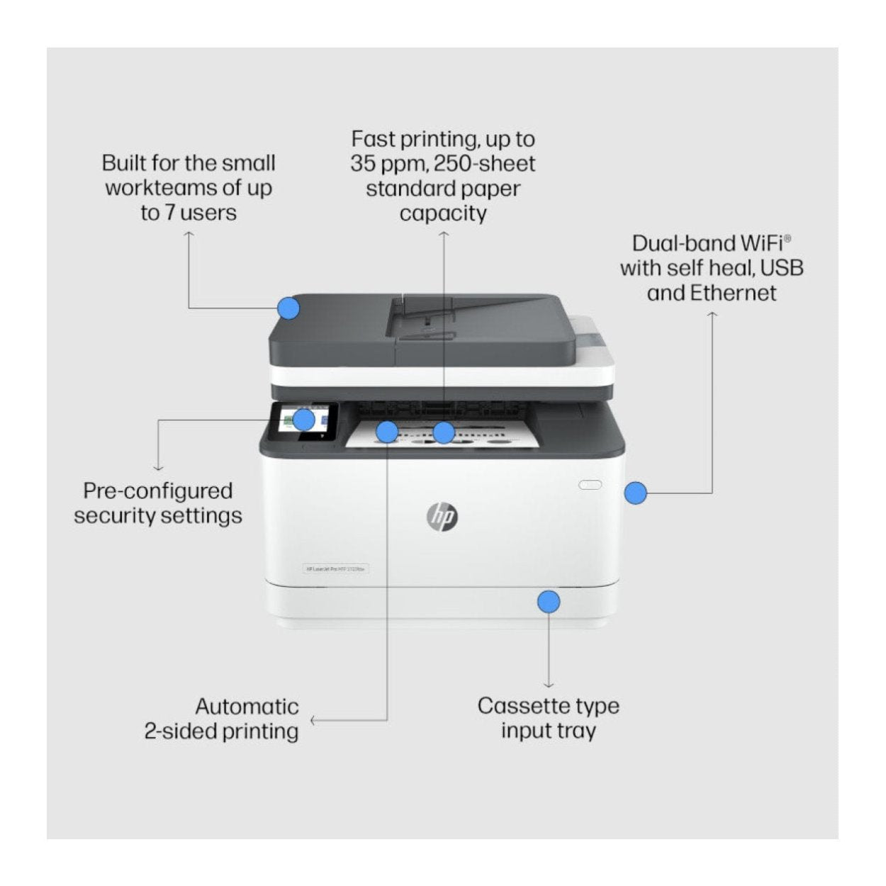 Print more efficiently. You can save time, paper, and costs with duplex speeds at 35 ppm.