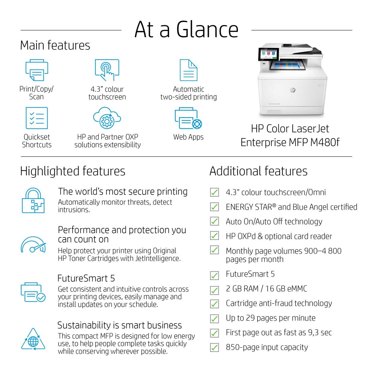 HP Color LaserJet Enterprise M480f A4 Multifunction Business Printer