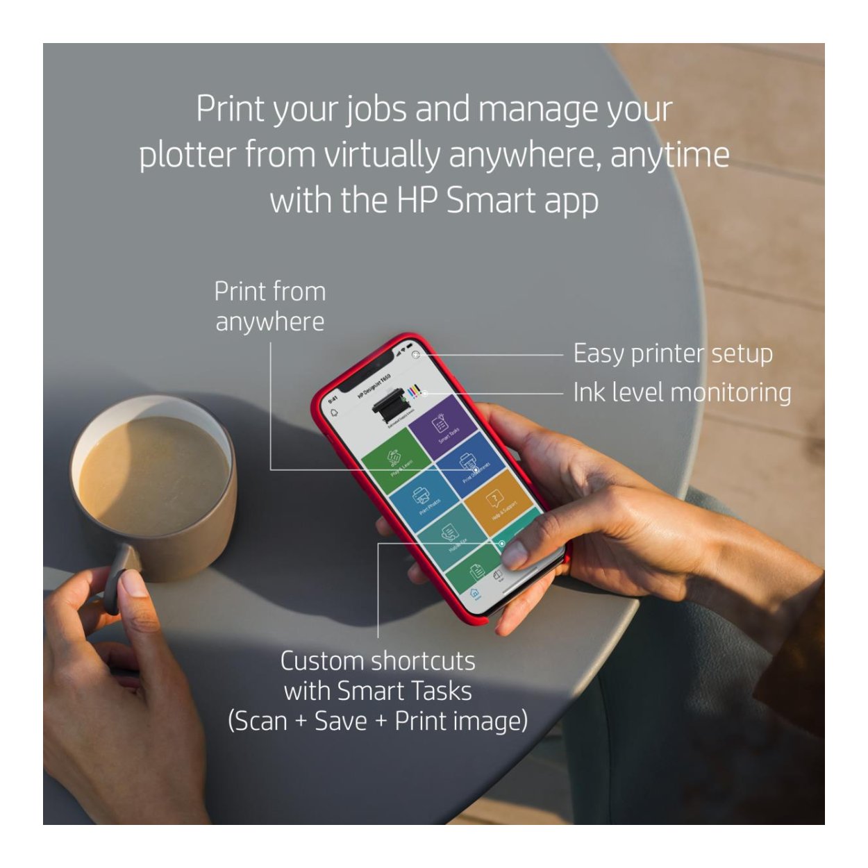 Focus on the project, not your plotter. This printer delivers incredible ease of use with HP Click Print solutions. It's responsibly designed to help you save energy and reduce plastics use. Plus, it’s compact and adaptable—to fit the way you work.