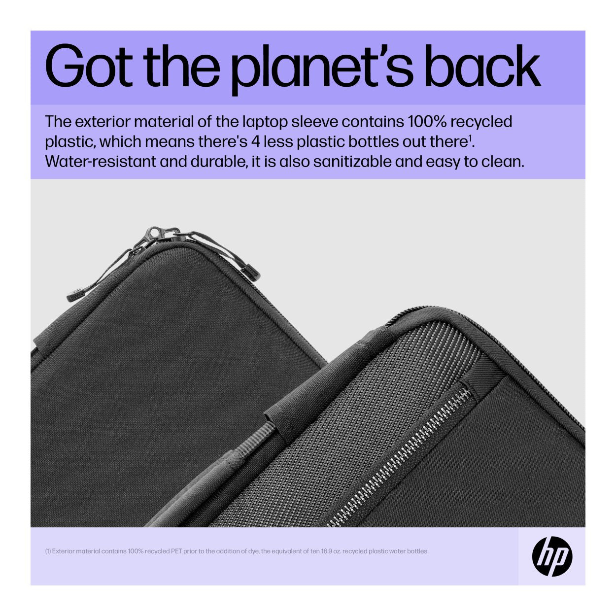 Keep your devices protected and keep your commitment to the planet. The exterior material of the laptop sleeve contains 100% recycled plastic, which means there's 4 less plastic bottles out there. In addition to being water-resistant, each laptop sleeve is made from durable, easy to clean sanitizable material.